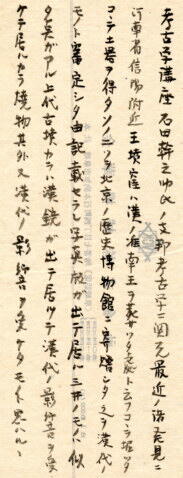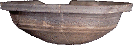 | 坏形土器 下の写真は大正3年3月21日、栄一が各務原市三井塚越を踏査した時に、無槨の古墳の主体部から採集した資料です。 大きさは口径12.8cm、底径3.8cm、器高3.9cm、現重量121gです。ロクロ左回転成形で、底部・下半部は箆削り成形しています。口縁は受口状 に作り、体部には雲文を思わせる櫛描文を施しており、日本では見たことのない技法です。 焼成は須恵器と比べるとやや甘いのですが、重ね焼きのため、口縁と体部・底部との色調が異なっています。 栄一は「支那考古学ニ関スル最近ノ諸発見」という記録の中に「信陽漢冢陶洗」というものがあることから、中国産の可能性が高いと考え、研究 者らに意見を求めていたようです。 恥ずかしながら、私も製作の特徴などから中国産ではないかと思いますが、それ以上の情報を得ていません。この製品の断面図だけを見ると、 古墳時代初期のS字口縁鉢にそっくりです。ただし、丸底でない点、文様のある点が異なります。しかし、全く無関係のものか否か、現状では分か りません。そして、このような資料が本当にこの1点のみなのか、という疑問を強く感じます。 仮に中国産としても、中国のどの地域のどの時期のものが美濃に来ていたのか、それを特定することは極めて意義深いことです。 この資料について、類例をご存じの方、正体をご存じの方、是非とも御教示をお願いします。 |