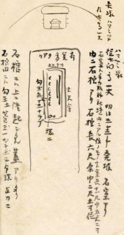 | 4 | ハマミ塚(山日向16号墳) | 各務原市那加長塚町 | 円 | 家形 | 長6尺余,幅2尺5寸位 石棺ニハ上ニ隆起シタル蓋アリタリ。石棺内ニ ハ 勾玉五管玉一切子玉三金環直刀二 |