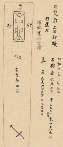 | 11 | 東山古墳 | 可児市土田渡 | 円 | 組合家形 | 蓋長6尺2寸,幅2尺2寸 往還北 俗称東山古墳「昭和7年開墾 |